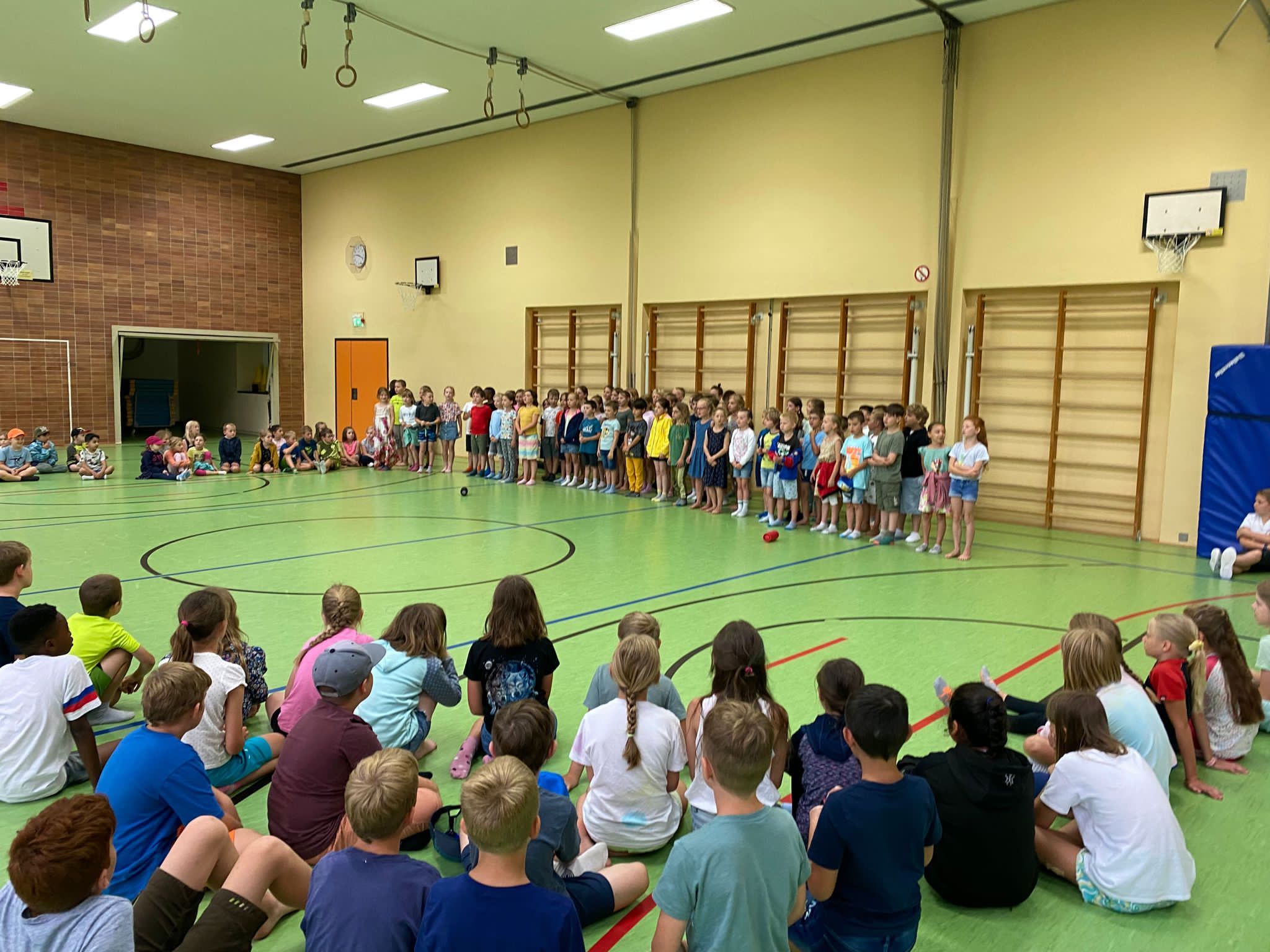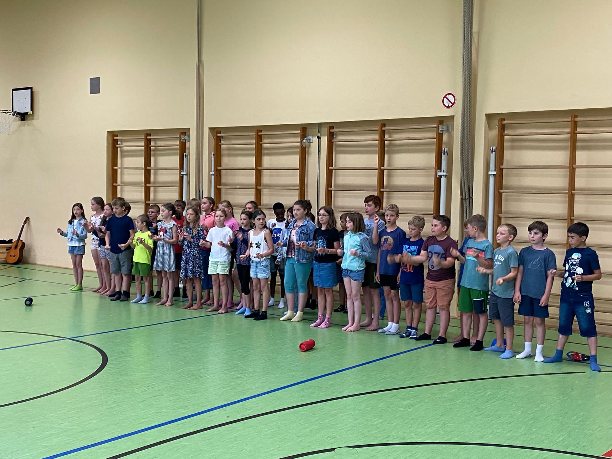Die BLKM feiert 10 Jahre Aktionstag Musik in Bayern! Auch die Schülerinnen und Schüler der Grundschule Grainau feierten mit und versammelten sich zum gemeinsamen Singen in der Turnhalle.